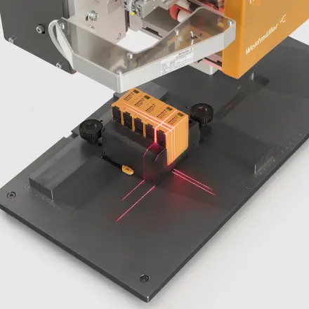 Grâce à la butée pratique, les composants de même taille peuvent être alignés de manière extrêmement efficace et marqués avec une grande précision.